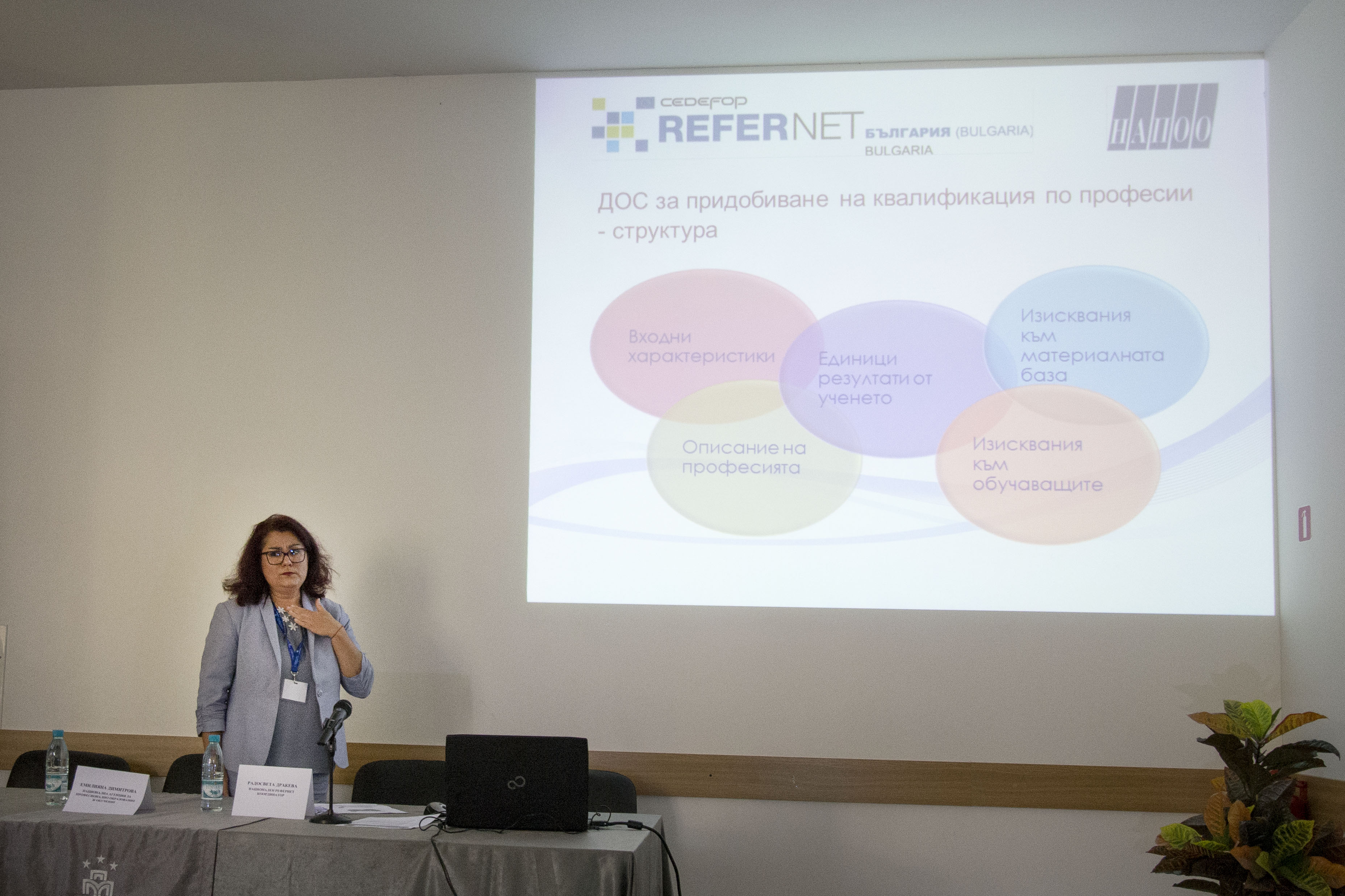 Беше представен подхода за разработване на „единици резултати от учене“ в Държавните образователни стандарти (ДОС) по професии – полезен инструмент не само за разработване на учебните планове и програми за професионално обучение, но и възможност за гражданите, за родителите, за учениците, за кандидатите за обучение и за работодателите да видят какви умения се усвояват в рамките на обучението по различни професии.