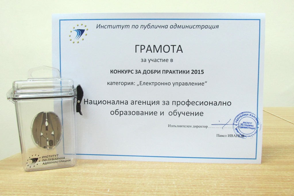 На 08.12.2015 г. в Дома на Европа на официална церемония Институтът по публична администрация отличи най-иновативните практики в държавната администрация. В категорията „Електронно управление“ НАПОО се класира на почетното трето място.