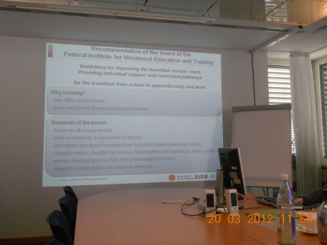 • second half of March 2012 – 5 beneficiaries for one week in Germany, Federal Institute for Vocational Education and Training (BIBB).